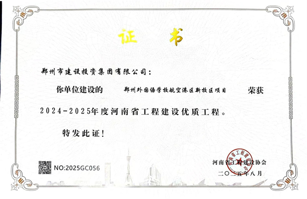 近日,由集团公司代建的郑州外国语学校航空港区新校区项目荣获2024-2025年度河南省工程建设优质工程荣誉。